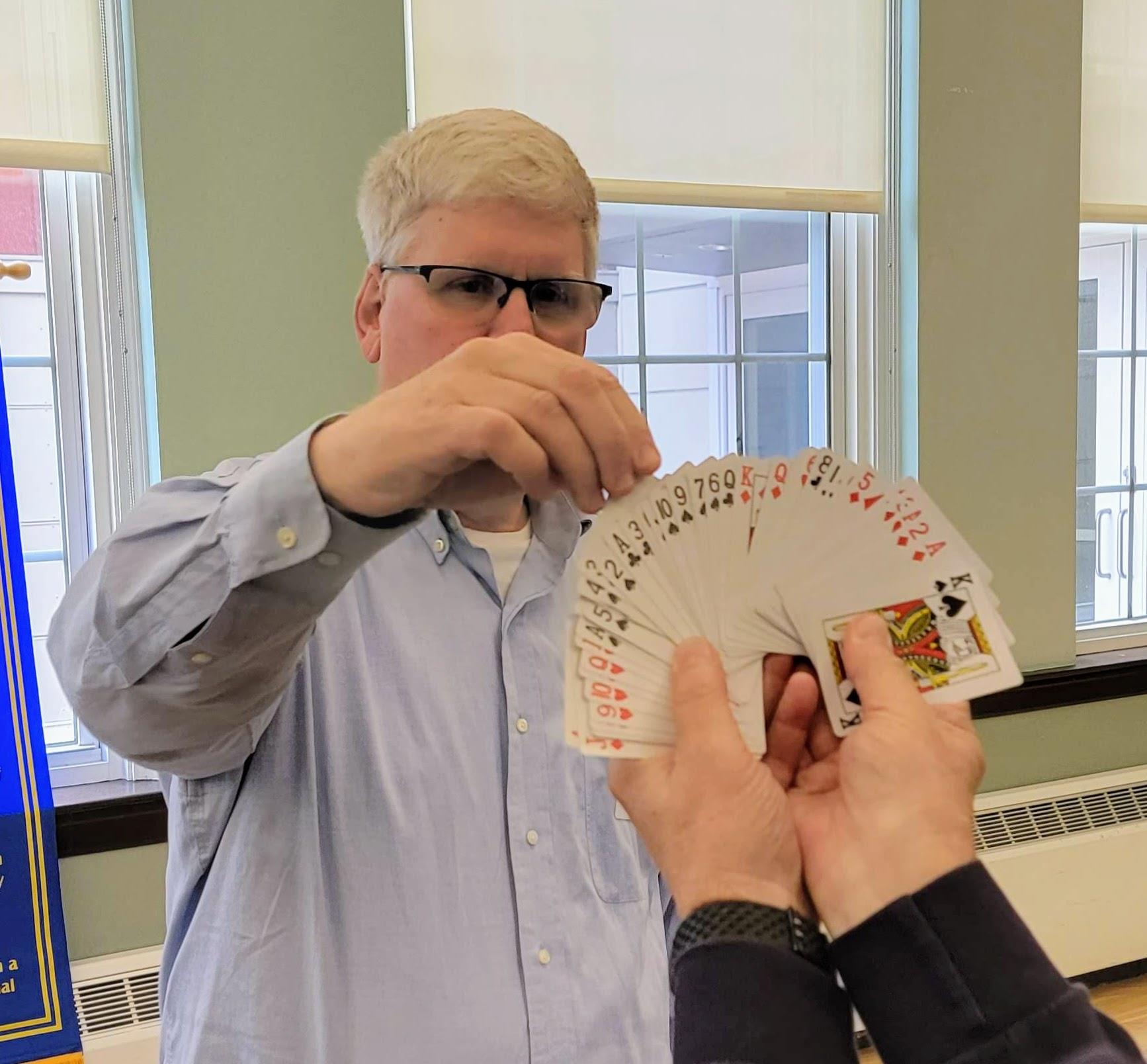 But, that's as far as his luck held. Rather than the joker, he picked the 3 of clubs and was introduced to the oft-repeated, "You're a winner for having played the game."